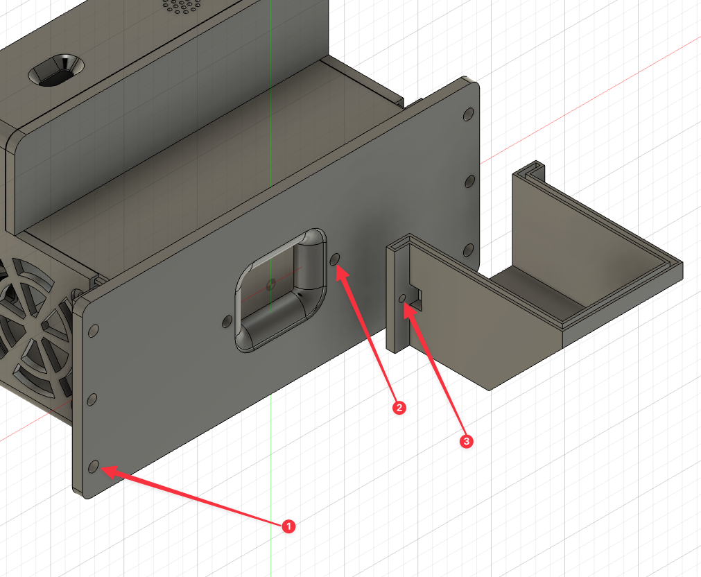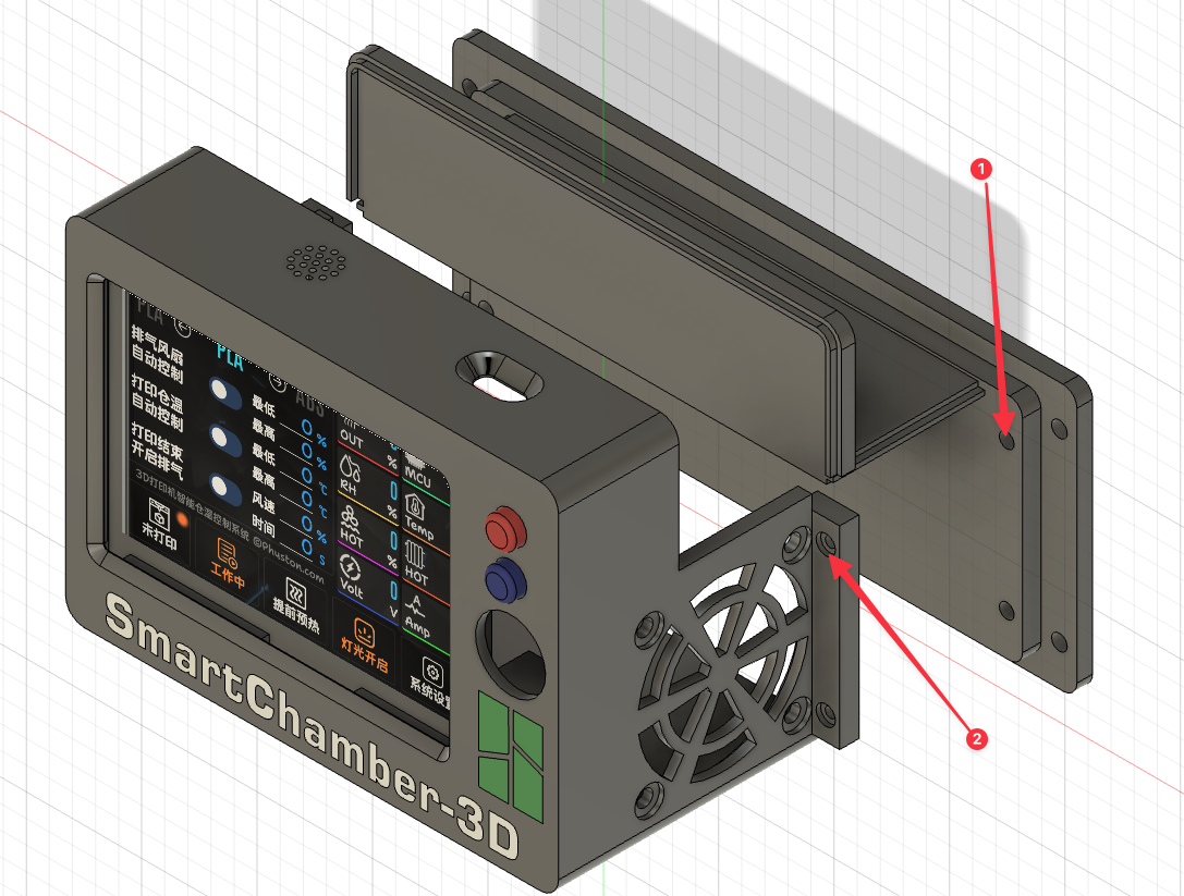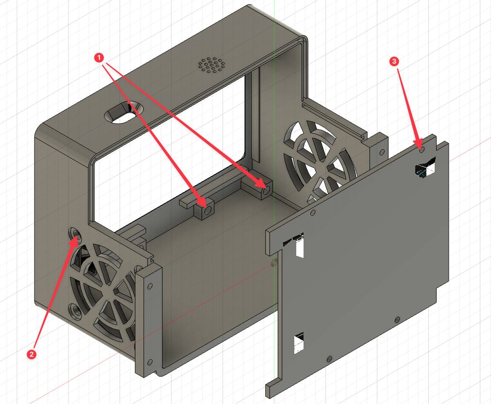 - Install the 4010 fan. Airflow direction: fan front facing outward, rear facing inward (blowing inward).