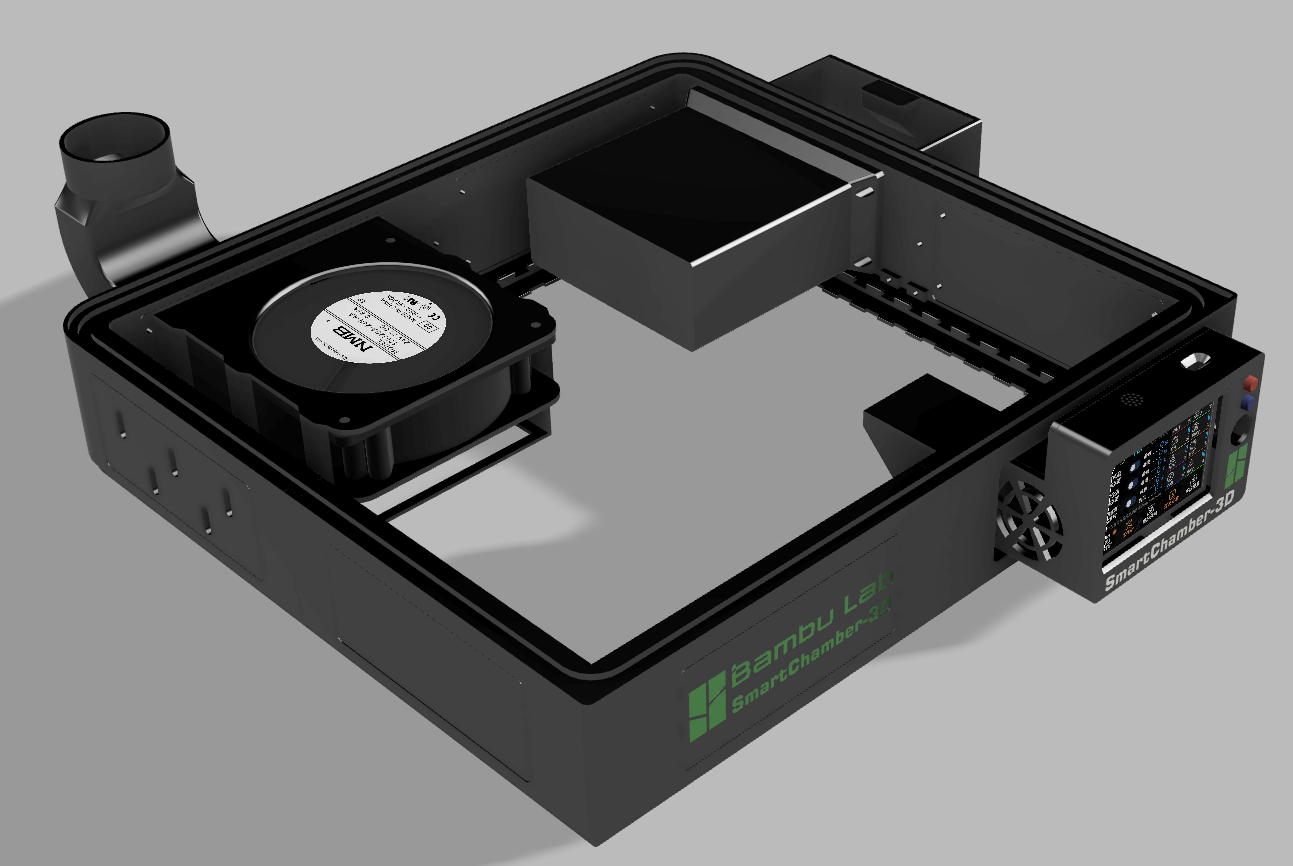 SmartChamber-3D is an intelligent chamber temperature control system for enclosed 3D printers. It provides chamber heating, hazardous gas exhaust, and automatic print-status detection to make printing more stable and hands-off.
